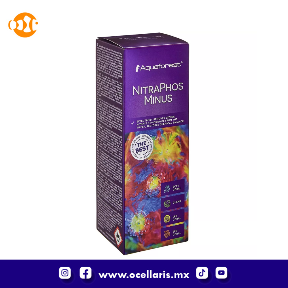 NitraPhos Minus es una fórmula única que tiene como objetivo eliminar biológicamente el nitrato, el nitrito y el fosfato del acuario. Activa el metabolismo en varios tipos de bacterias, que se encargan de la gestión y eliminación del exceso de nutrientes.