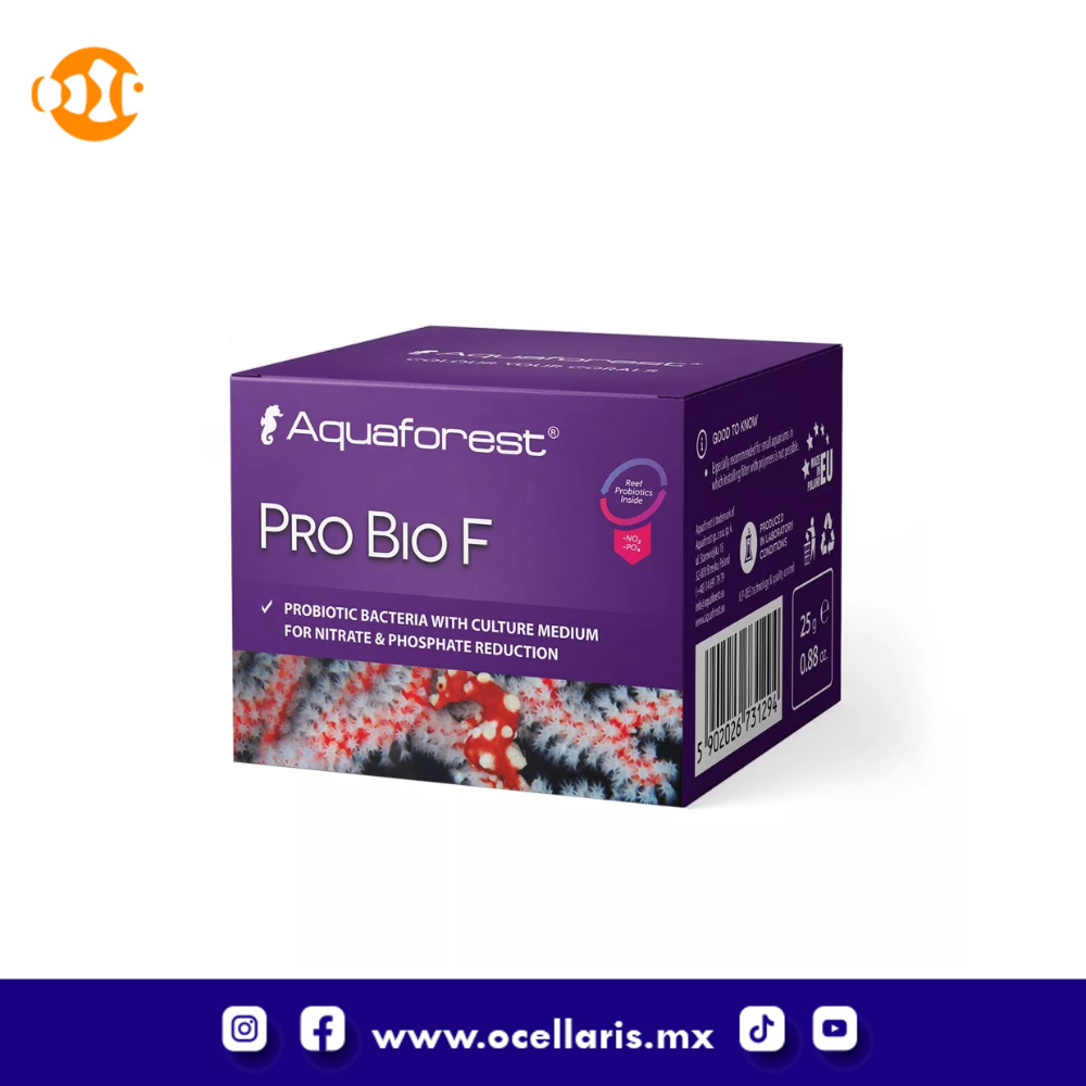El producto contiene una composición única de bacterias probióticas liofilizadas y nutrientes para facilitar su multiplicación. Pro Bio F está especialmente recomendado para acuarios pequeños en los que la instalación de un filtro con polímeros no es posible o es mucho más difícil. Puede sustituir la administración de VSV (Vodka, azúcar y vinagre) u otras fuentes de carbono pero de manera totalmente segura. La composición única de cepas de bacterias probióticas especialmente seleccionadas ha sido desarrollada para acelerar la descomposición de la materia orgánica. Mejora la claridad del agua y favorece la limpieza del sustrato. El uso de Pro Bio F reduce la cantidad de nitrato a un nivel indetectable, proporcionando al coral condiciones de vida perfectamente equilibradas y una excelente coloración. Dosis: 1 cuchara por cada 100 l (27 US gal) de agua al día. Producto para uso exclusivo en acuarios. Aléjese de los niños. No apto para el consumo humano.