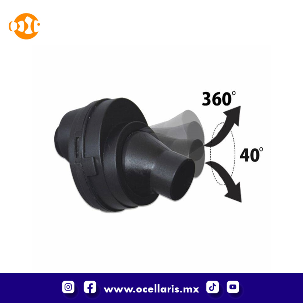 para crear una corriente oceánica natural en tu tanque de arrecife. La presión del flujo empujará la boquilla creando un flujo aleatorio en todas las direcciones. El flujo aleatorio ayudará a simular los entornos naturales de los arrecifes y, con el accesorio de boquilla