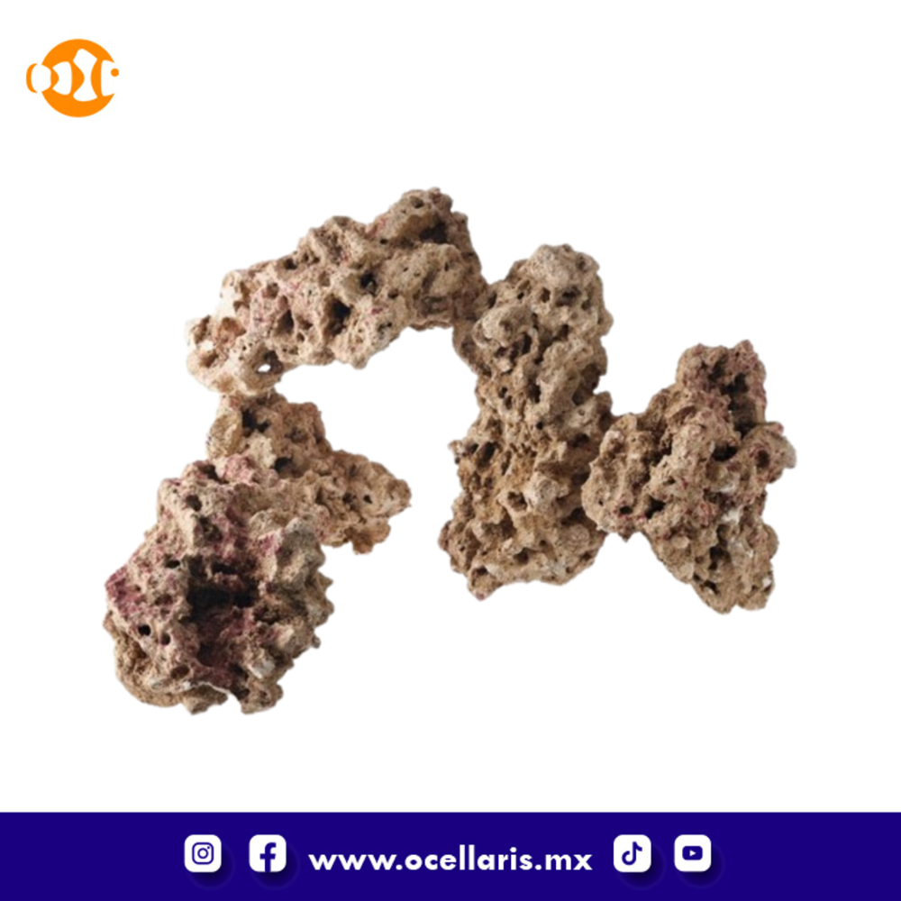 es una roca a base de aragonita real de alta porosidad que se adicionada con bacterias vivas en forma de esporas para proporcionar un comienzo del ciclado mas rápido.