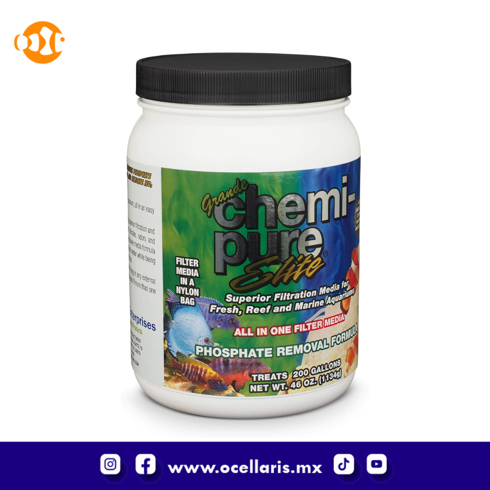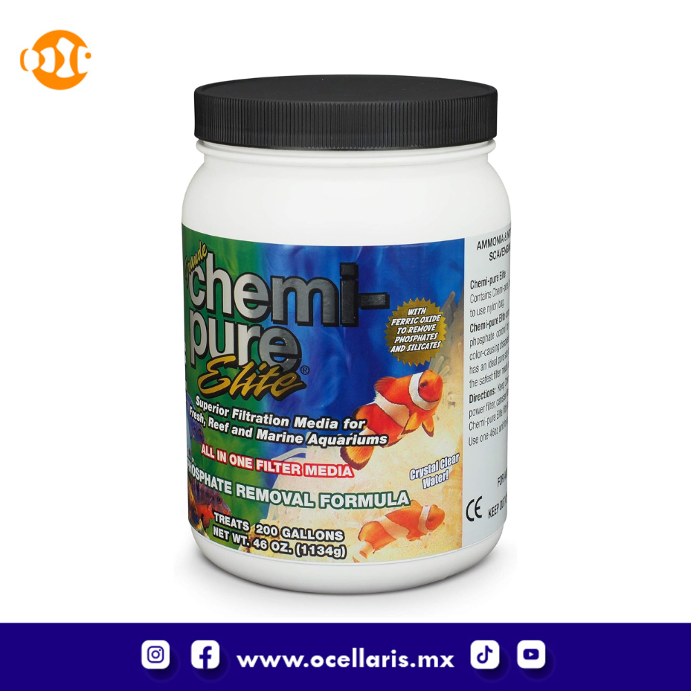 con nuestra mezcla patentada de GFO para brindarle la capacidad de eliminar fosfatos y silicatos del agua de su acuario. Ahora presentamos nuestra mejora más reciente a la fórmula original de Chemi-pure, QuickWash Carbon™.