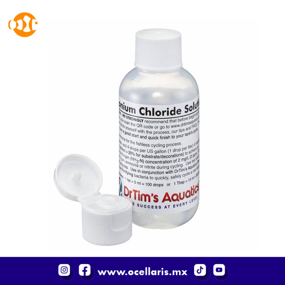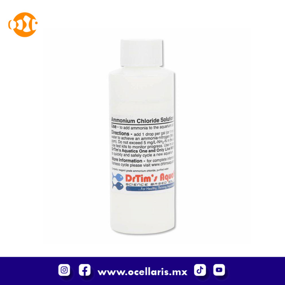 a su acuario. Luego agregue 4 gotas de solución de cloruro de amonio del Dr. Tim por galón de agua del acuario para lograr una concentración de amoníaco de 2 mg / L-N (2 ppm) de amoníaco.