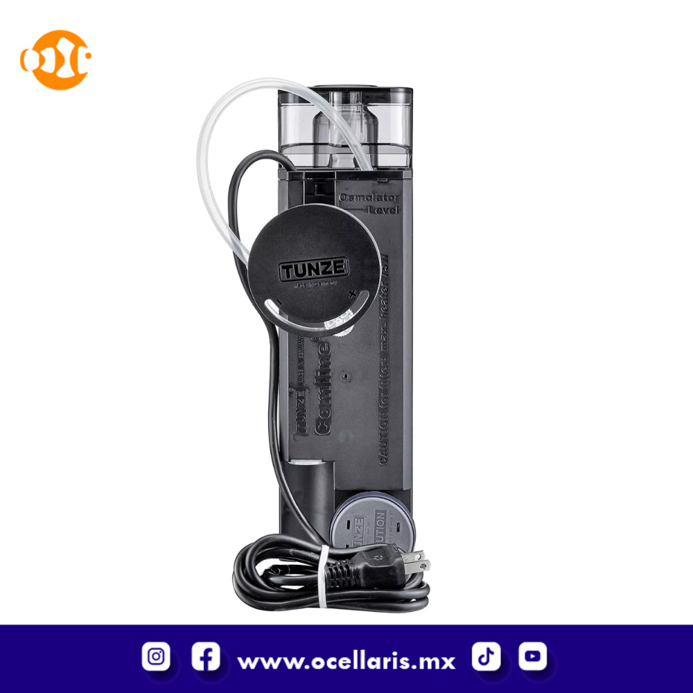El espumador TUNZE® genera grandes volúmenes de burbujas de aire finas con un diámetro de .0039 a .011 pulg. (0,1 a 0,3 mm) En la superficie de las burbujas de aire, los contaminantes como proteínas, celulosa, células muertas, etc. se adsorben inmediatamente. La mezcla de agua / aire se expande y estabiliza en el reactor de la copa del skimmer, el agua regresa al acuario y las burbujas de aire cargadas de proteínas se derraman en la copa del skimmer. La cámara intermedia del sistema antiespumante patentado evita que el skimmer forme espuma excesiva y controla el rendimiento del skimmer, dependiendo del nivel del agua y la carga orgánica. Este principio de "desnatado rápido", en comparación con los grandes skimmers con un largo tiempo de contacto, se obtiene porque las sustancias adsorbidas por las burbujas de aire no se liberan nuevamente, por lo que no regresan al agua del acuario.