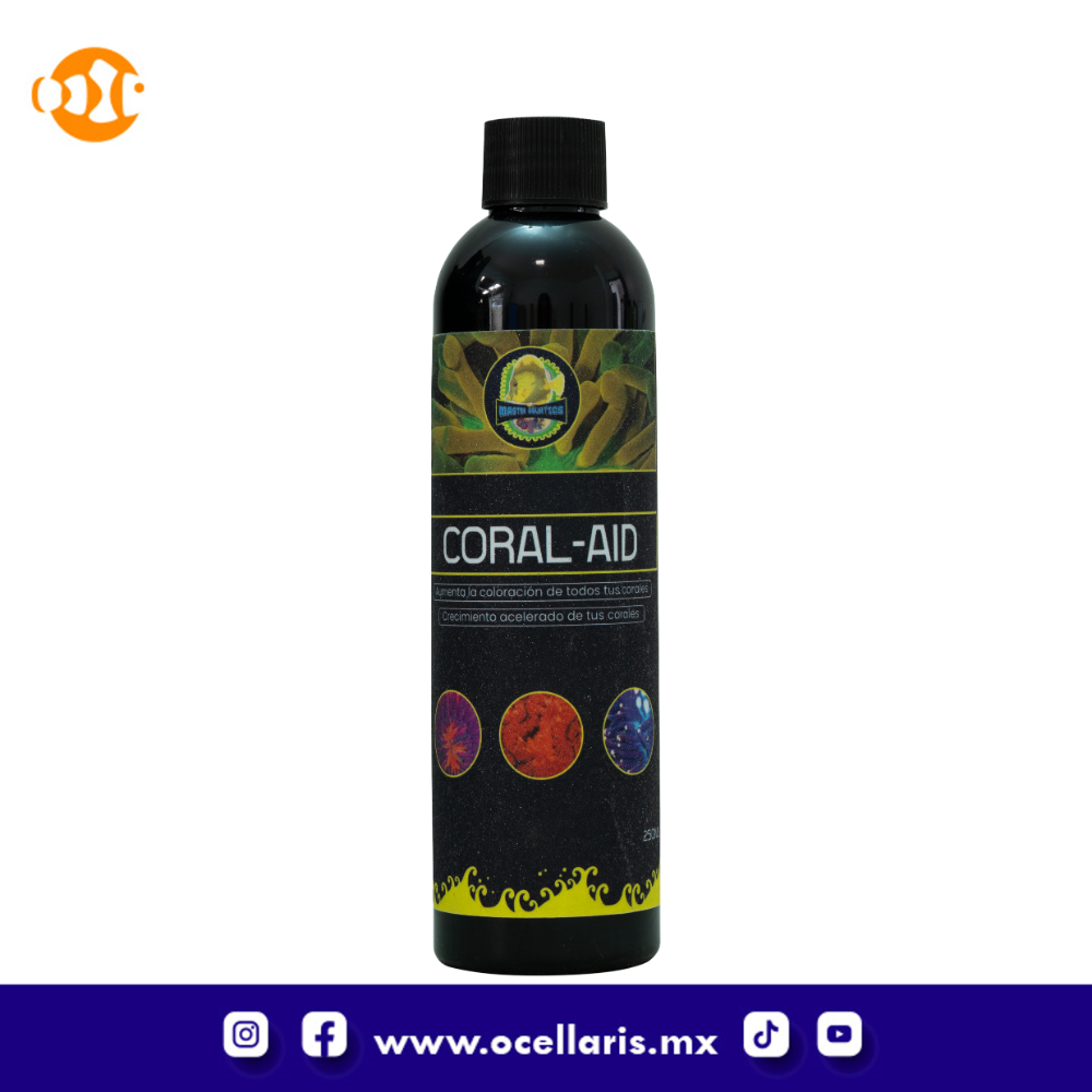 aumentará notablemente la coloración en todos los corales en tu acuario, gracias a que los aminoácidos son precursores de las cromoproteínas las cuales son pigmentos responsables de la coloración.