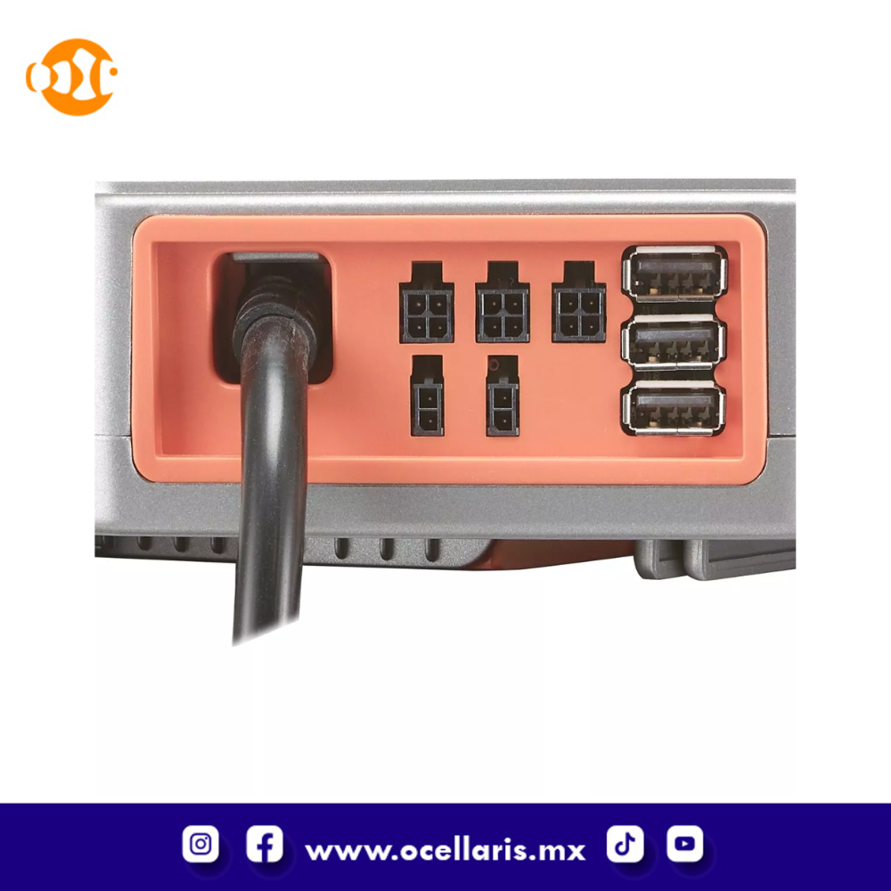 está equipada con dos puertos de accesorios de 24 V CC que pueden alimentar bombas pequeñas, solenoides, ventiladores y más, mientras que la fuente de alimentación de CC de 100 W integrada le permite controlar hasta 3 accesorios 1Link como las bombas de circulación WAV y el sistema de medición de fluidos DOS. sin necesidad de fuentes de alimentación adicionales ni consumo de tomacorrientes adicionales. El