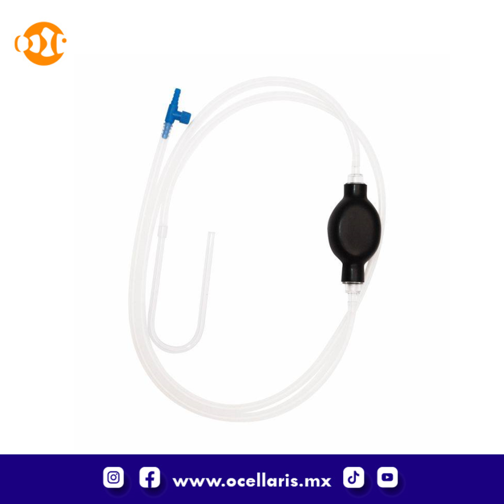 La bomba manual de arranque por sifón inicia instantáneamente el proceso de aclimatación: no hay necesidad de sifón bucal, sin ensuciar y sin mojar las manos.
