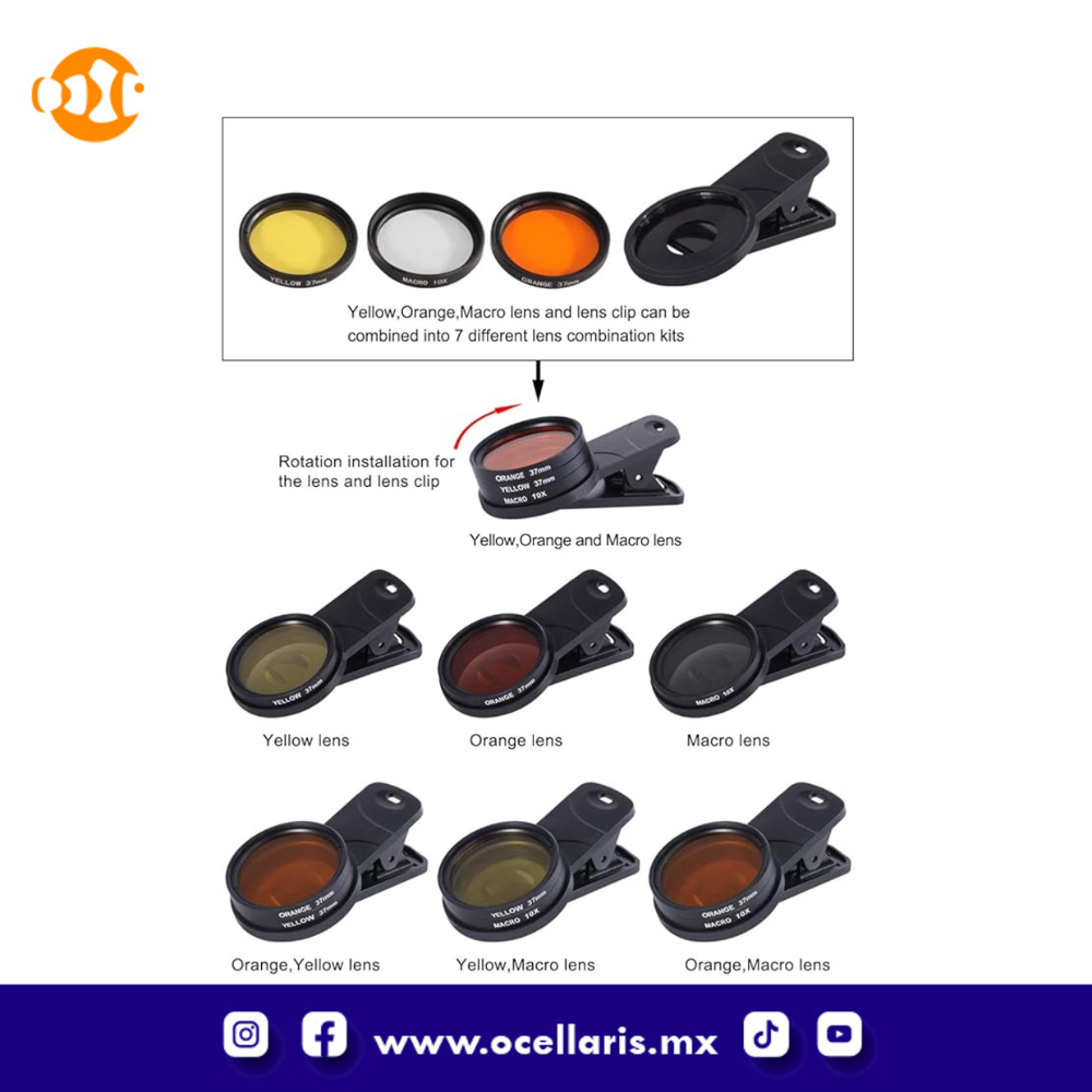 Cada caja contiene: 1 clip de soporte de lente diseñado con precisión 1 lente de filtro pulido de 15k 1 lente de filtro pulido de 20k 1 lente macro de grado profesional 10x 1 paño de limpieza Capturar la belleza de la naturaleza con una luz perfecta, con el ángulo perfecto usando su teléfono inteligente o tableta nunca ha sido tan fácil con la nueva lente para visualizar corales de Bubble Magus. Tomar fotografías de sus hermosos corales a menudo requiere cambiar el espectro de color de la luz del acuario o montar una configuración de iluminación compleja. Con la nueva lente de Bubble Magus, tome fotografías rápida y fácilmente para obtener la toma perfecta en todo momento.