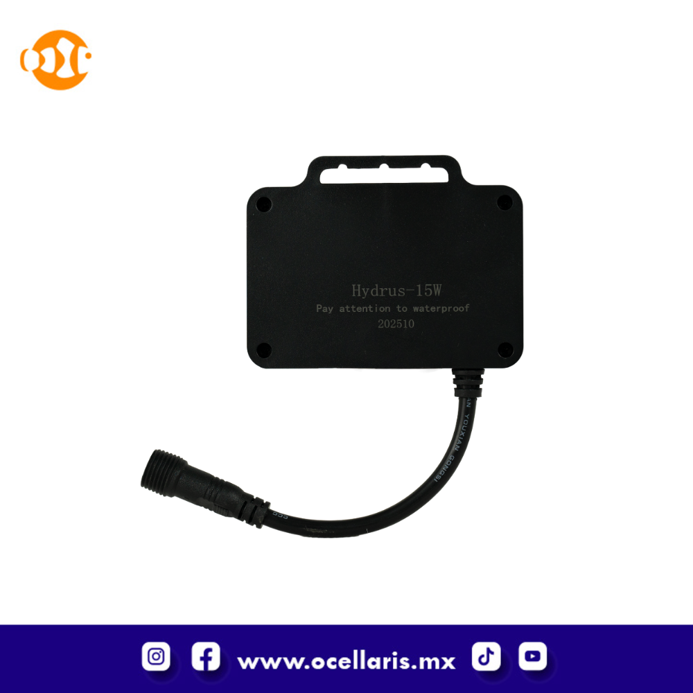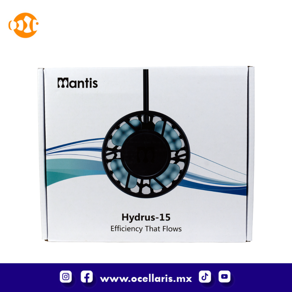 Hydrus-15 Eficiencia que Fluye Imagina una corriente de agua que cubre todo tu acuario sin golpear directamente a tus corales. Eso es exactamente lo que hace el Mantis Hydrus-15. Su hélice única crea un movimiento de agua extendido y ajustable que mantiene todo en circulación (comida, basura, partículas flotantes) mientras protege a tus habitantes más delicados. Las bombas antiguas concentraban todo el flujo en un solo punto, lo que podía irritar a los corales. El Mantis Hydrus-15 cambió las reglas del juego con su diseño innovador que distribuye la corriente de manera uniforme. ¿Para qué necesitas un generador de olas? Simple: para que no se formen "zonas muertas" donde se acumula suciedad, y para que todo lo que debe filtrarse llegue efectivamente a tus filtros. Bonus: puedes elegir entre 5 modos de oleaje y variar la intensidad. Y lo mejor: todo se maneja desde el controlador integrado. Prendes, escoges el modo, ajustas la velocidad. Tú tienes el control total. “La bomba generadora de olas Mantis Hydrus-15 es una moderna bomba de circulación que garantiza un flujo de agua eficiente incluso en los acuarios más exigentes. Su controlador inteligente garantiza un flujo de agua óptimo incluso en acuarios con las configuraciones más avanzadas y un nivel de población exigente.” Características: