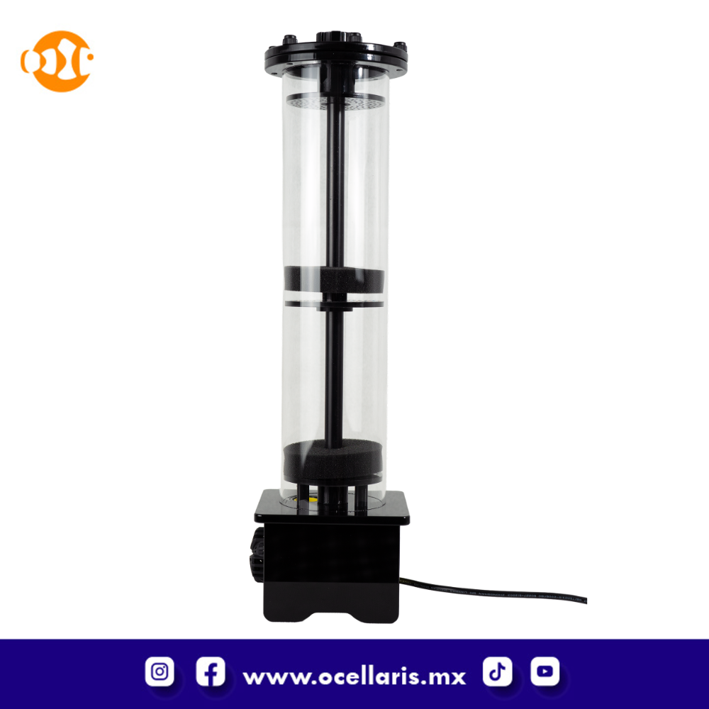 Mantis Media Reactor MR100s con Bomba y Controlador El Reactor de Medios Mantis MR 100s está equipado con una bomba de alimentación controlable y admite dos medios filtrantes diferentes al mismo tiempo. Es ideal para usar con carbón activado, GFO o Bio-Pellets. Diseño de flujo ascendente de alto volumen y fácil montaje. El MR100s se recomienda para acuarios de 100 a 500 litros. Dimensiones: 120 mm de largo x 125 mm de ancho x 480 mm de alto, 90 mm de diámetro, capacidad total de medios: 1500 ml. El Reactor Mantis MR100s es un reactor de medios de alto rendimiento diseñado para una filtración eficiente en acuarios. Suministrado como un kit completo con bomba DC y controlador , proporciona un control preciso del caudal para un rendimiento óptimo de las resinas, biopellets o carbón activo. Ideal tanto para acuarios marinos como de agua dulce, el MR100s garantiza el máximo contacto entre el agua y el medio filtrante, lo que resulta en un agua más cristalina y saludable. Características principales: