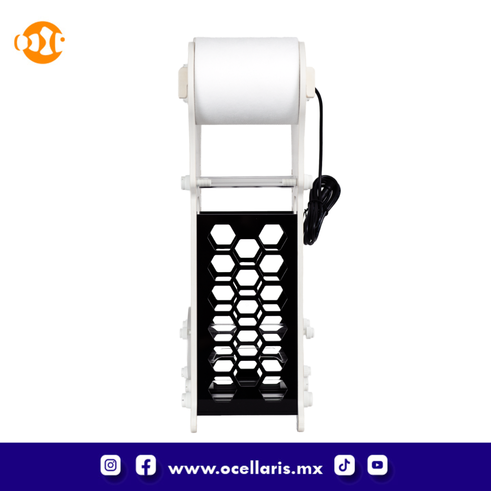 Mantis RollerMat-300 El sistema de filtro automático Mantis RollerMat-300 está especialmente desarrollado principalmente para su uso en acuarios marinos para reemplazar el uso de calcetines filtrantes. El sistema de filtrado automático RollerMat-300 dejará su tanque con un agua brillantemente limpia que le ayudará a aumentar la penetración de la luz, reducirá el mantenimiento, y la mejor ventaja de todas, el material especial de alta calidad de los rollos, gracias a sus propiedades, cuidará de la limpieza del agua y mantendrá los parámetros ajustados. El RollerMat-300 de Mantis es ideal para tanques de hasta 300 litros. Diseñado con la calidad excepcional que caracteriza a la marca Mantis, este dispositivo ofrece una solución práctica y eficiente para el mantenimiento de los acuarios marinos. Es un producto destinado a facilitar el manejo y limpieza de los tanques. Su diseño innovador garantiza un funcionamiento óptimo, permitiendo una limpieza exhaustiva y eficaz. No pierda más tiempo y adquiera el RollerMat-300, el accesorio esencial para el cuidado adecuado de su tanque marino. ¡Disfrute de un producto excepcional!