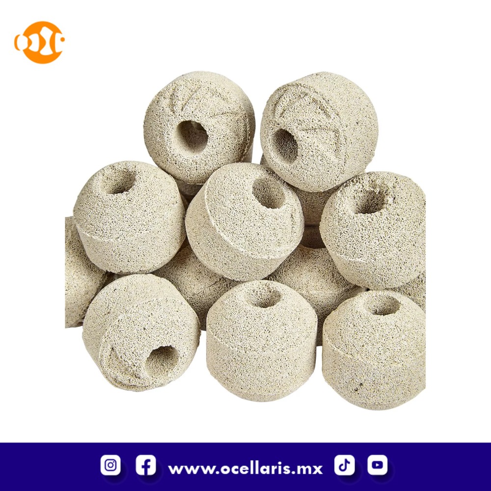 Su diseño de cerámica poroso, denso y compacto proporciona una superficie de filtración ultra alta y a su vez, aumenta el flujo de agua a través de la estructura creando un medio óptimo para el crecimiento de colonias de hongos y bacterias beneficiosas, como bacterias nitrificantes o procariotas fotótrofos. Adecuado para acuarios y estanques de agua dulce y salada, sumideros, filtros secos/húmedo, pueden ser colocadas tanto en los mismos filtros como directamente en los tanques.