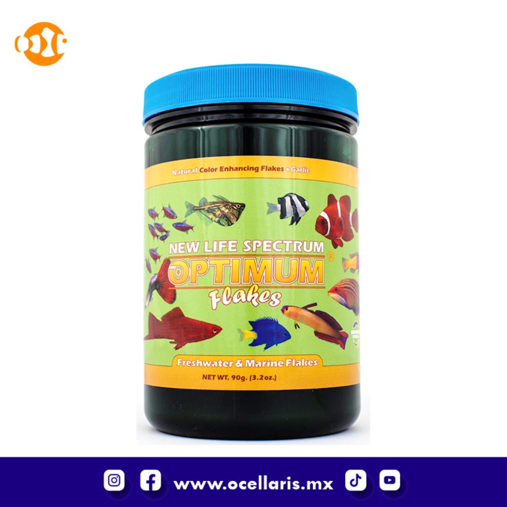 Como todos los productos de Spectrum, las hojuelas Optimum combinan proteínas marinas de alta calidad como el krill antártico entero y vegetales acuáticos como la espirulina y las algas Chlorella en una solución rica en nutrientes para sus peces.
