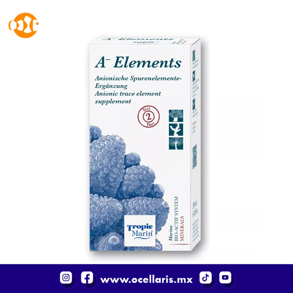 Suplemento de oligoelementos aniónicos esenciales para acuarios de arrecife.