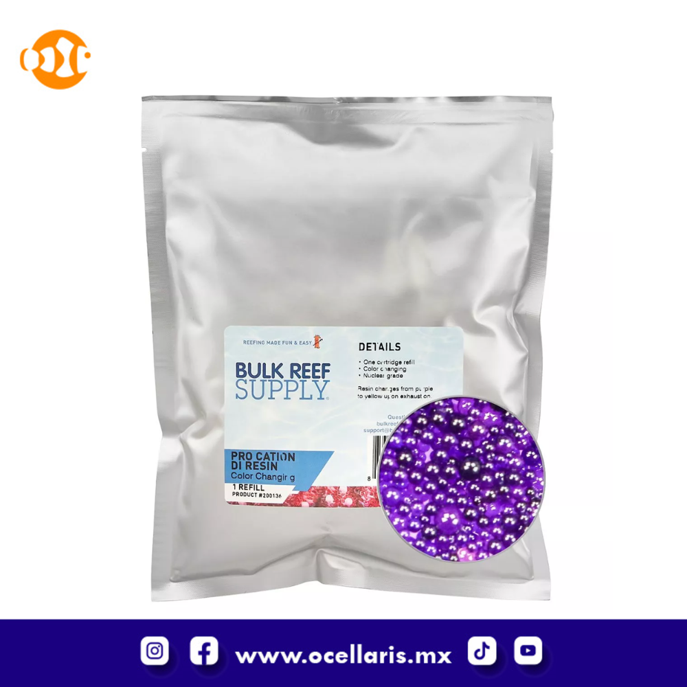 contiene sólo perlas de cationes que se centran en eliminar los iones cargados positivamente del agua que pasa a través de ella. A medida que la resina se agota, cambiará de púrpura a ámbar, lo que le permitirá saber de un vistazo cuándo se agota. Esto se usa más comúnmente como la primera etapa en un sistema DI de cama individual.