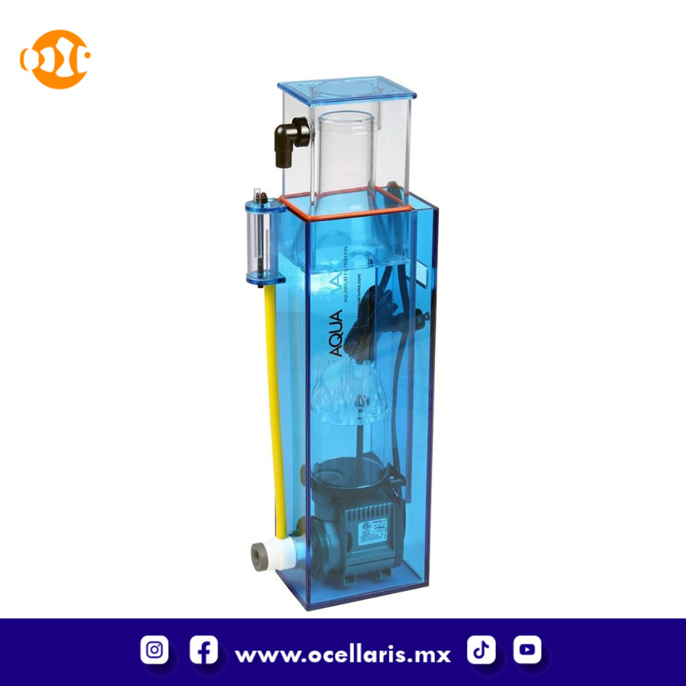 Elimina los desechos orgánicos del agua del acuario, crea una fuerte mezcla de pequeñas burbujas de aire y un movimiento turbulento del agua para forzar las proteínas los desechos y otros materiales a un recipiente colector para facilitar su extracción. Los nuevos difusores cónicos ayudan a reducir la turbulencia en la cámara de reacción y logran un flujo laminar más estable para maximizar el rendimiento.