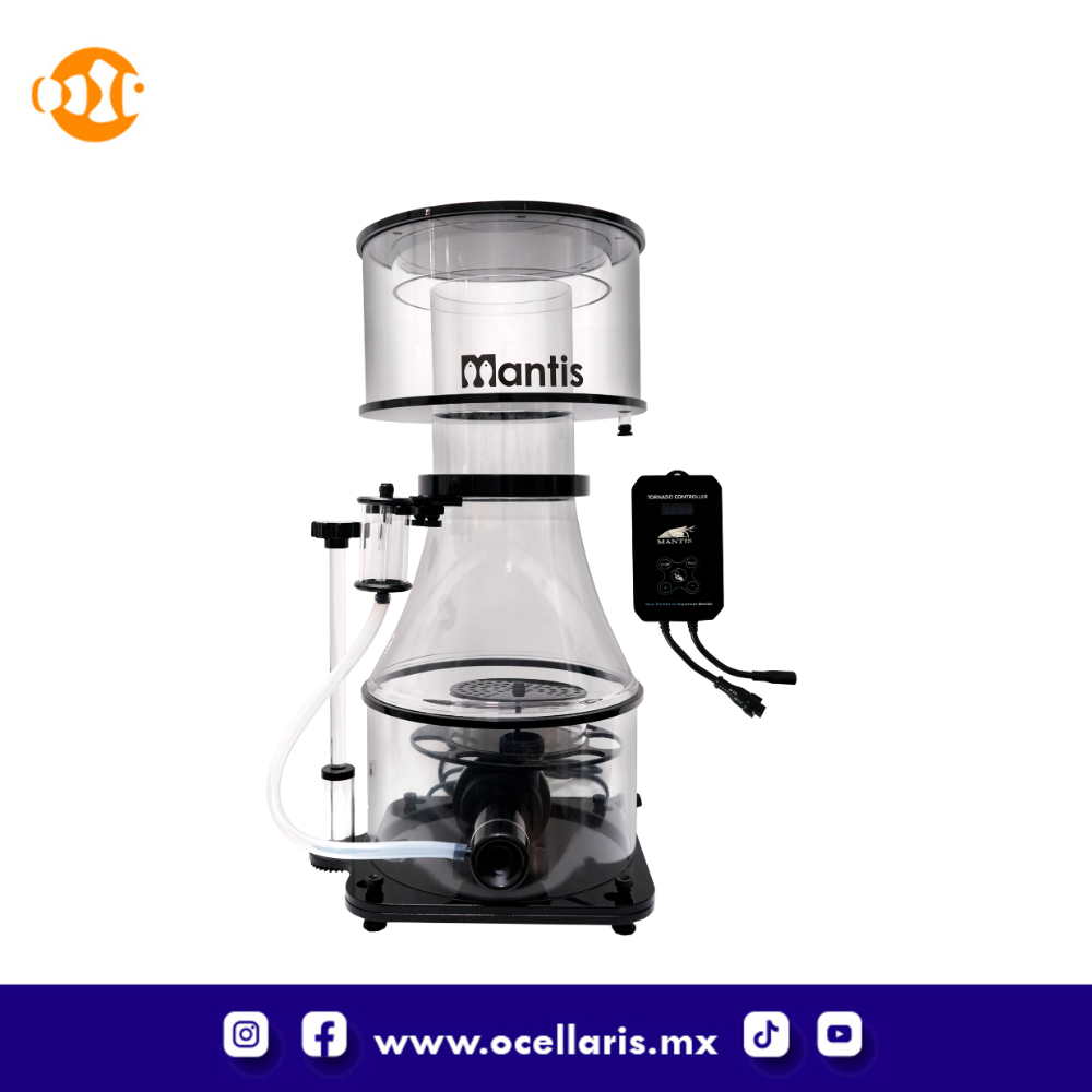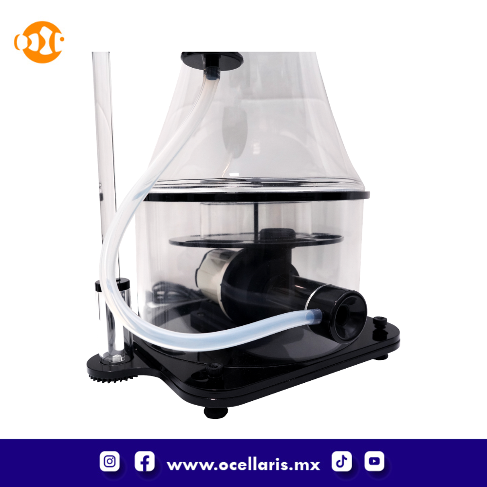 fue creado para ser muy eficiente en tanques de 2,000 a 3,000 litros, monta una silenciosa bomba DC que junto con el diseño de piezas internas como el difusor de burbujas y externas como la estilizada silueta cónica de acrílico, crean millones de microburbujas permitiendo un excelente espumado y la exportación incansable de desechos de tu tanque.